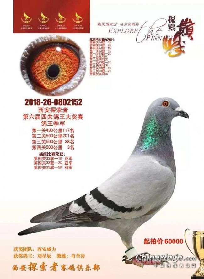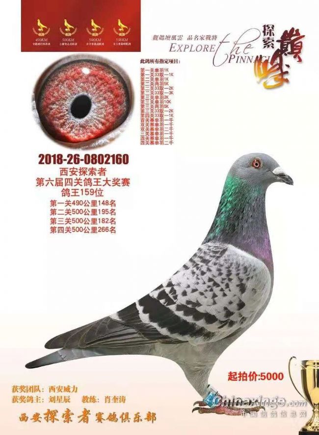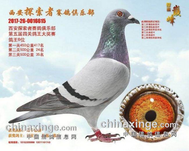 震宇赛鸽-刘星辰全国鸽友并不陌生,2017年西安威力赛鸽俱乐部“中国好鸽子”综合鸽王季军、探索者赛鸽俱乐部综合鸽王六名、宁夏开拓者赛鸽俱乐部无冕之王伯马冠军,都来自震宇赛鸽-刘星辰作育作翔。