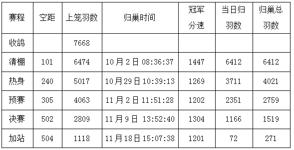 艰难赛事成就王者精英。不得不说,山西孝义弘辉公棚本届秋赛真正算得上的难度大,但最终的优胜鸽也整整展现了王者的实力!