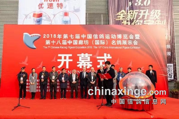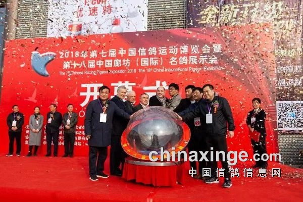 2018年11月17日上午,第七届中国信鸽运动博览会暨第十八届中国廊坊(国际)名鸽展示会在河北廊坊会展中心正式拉开帷幕。此次展会由中国信鸽协会、河北省体育总会、廊坊市体育局主办,河北省信鸽协会、廊坊市体育总会、廊坊市信鸽协会、廊坊市友祥信鸽发展有限公司承办,廊坊市隆飞尔动物用品有限公司、北京赛鸽天地协办。