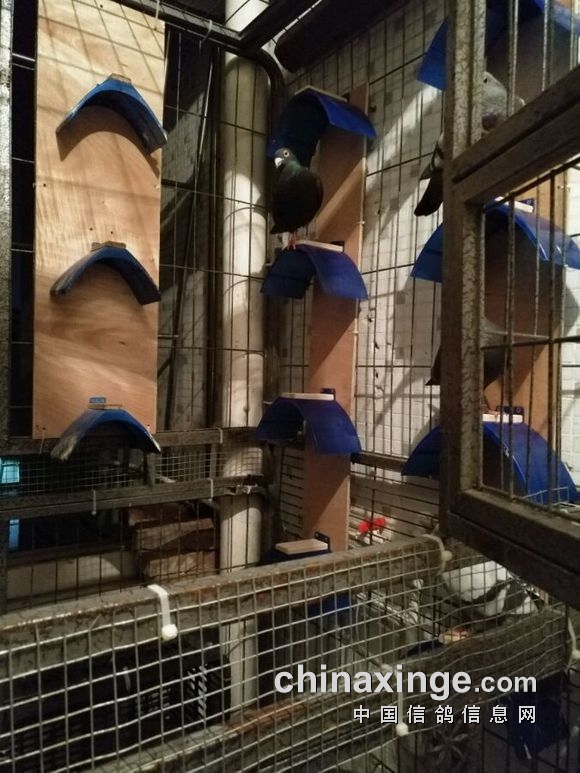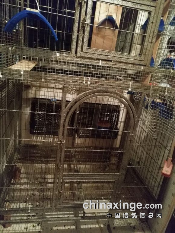 地方有限,阳台这样能养多少鸽子呢?两个狗笼叠加在一起,高是2.4米,宽1米,长1.2米,现在栖架钉了11个,养了几个菜鸟。