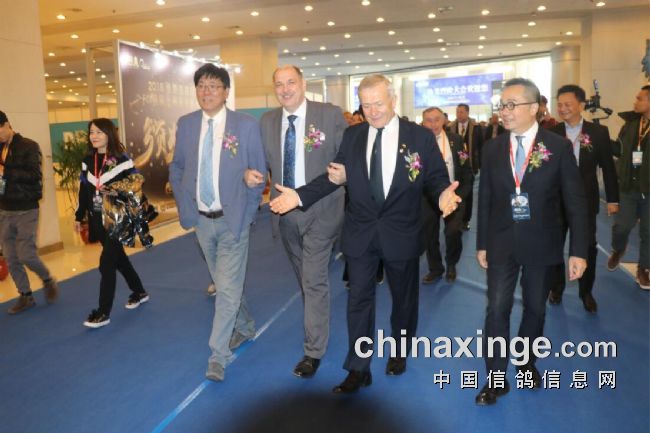 2018年11月23日,德国信鸽文化博览会(DBA)西安展,在西安绿地笔克国际会展中心盛大开幕!站立在巨幅的比利时漫画家弗朗索瓦创作的地毯画作之上,德国信鸽协会主席理查德·格罗斯(Richard Gross)先生,中国信鸽协会秘书长邢小泉先生,一鸽文化创意(上海)有限公司董事长林则宇先生,国际鸽联主席伊斯特凡·巴窦斯(István Bárdos)先生,比利时皇家信鸽协会主席弗朗斯·赫尔曼(Frans Hermans)先生,一鸽文创董事长何幸芳女士,金花豪生国际大酒店总经理吴军先生,陕西省信鸽协会副主席兼秘书长王爱军女士共同为当天的开幕式剪彩。