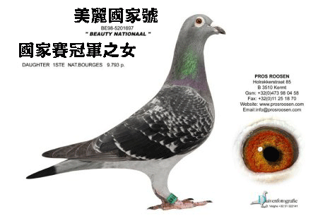 “国家号”的母亲“小利摩日号”,获得利摩日省赛冠军,国家3名,拉苏特兰省赛亚军等。它是“超级赛鸽327号”半姊妹作出的近血下代。