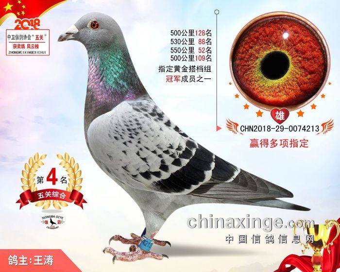 从10月15日第一关300公里10559羽起站,到11月28日第五关500公里放飞818羽,残酷淘汰之后,入围鸽王的赛鸽,都是实力非凡的战将。王涛的18-29-0074222灰鸽五关比赛越飞越快,后赛鸽均入围前百名,决赛更是获得冠军,体现了它的稳定、快速特点。王兵磊同样发挥出色,前三入围三羽,分别获得亚军、六、七名。