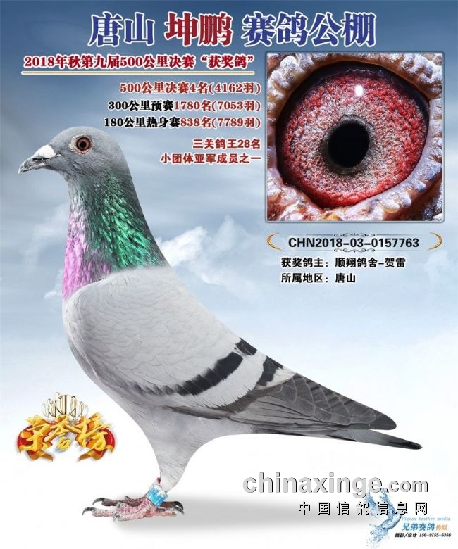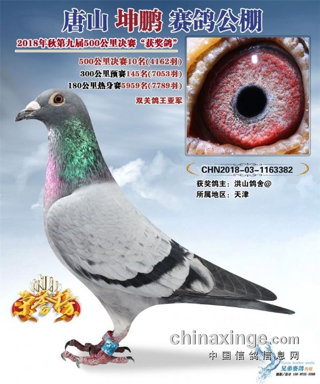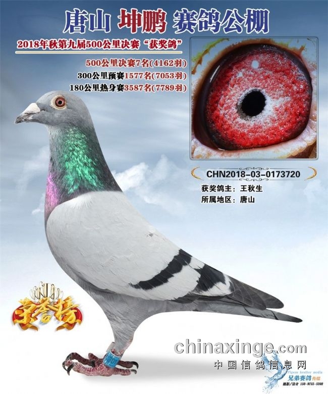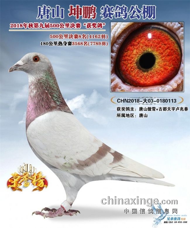 河北唐山坤鹏公棚2018年秋季决赛获奖鸽 1—100名