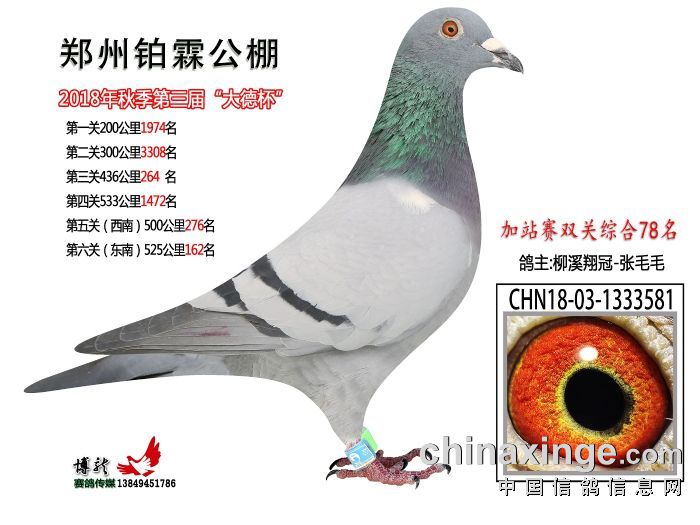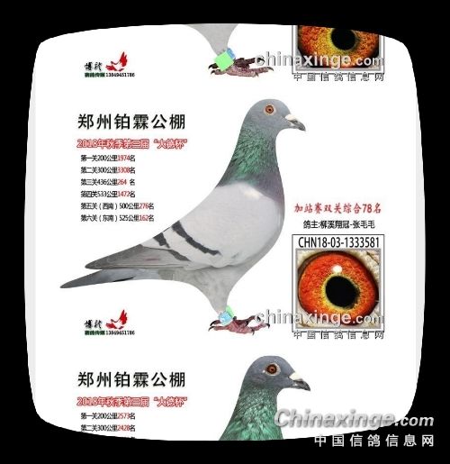 也是自己工作繁忙,最后决定将这两羽幼鸽交去公棚,自己从来没有参加过比赛,有种初生牛犊不怕虎的精神,最后在鸽友的帮助下鸽子也安全到了公棚,也是第一次参赛,三分种七分养,鸽子也挣了一口气,朋友送的那羽入赏了,我也很高兴,向鸽友报喜。在今秋的赛事,我和鸽友共同联合,也入赏几羽,虽然成绩一般,但是斗志的精神永存,我在这里感谢帮助过我的鸽友,我会永远记住你们,要有一颗感恩的心,多向你们学习,愿你们在以后的赛事中,多飞冠军,多拿大奖,谢谢你们在赛鸽道路上对我的帮助。