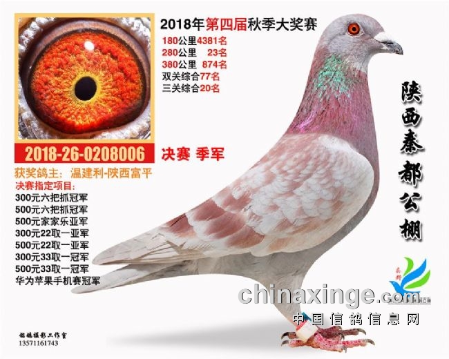 陕西凤翔秦都公棚2018年秋季决赛获奖鸽 1—100名