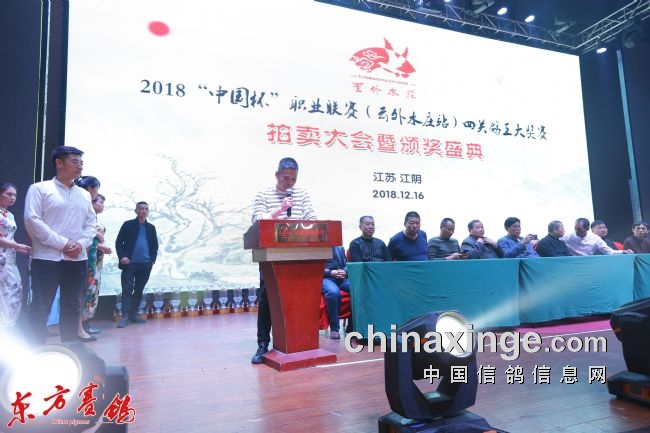2018年12月16-17日“中国杯”职业联赛(云外水庄站)四关鸽王大奖赛功勋名鸽颁奖拍卖会在江阴市罗浮宫银河国际大酒店落下帷幕,其间200名获奖鸽的精彩拍卖场景让与会嘉宾留连忘返,拍卖师声如洪钟、抑扬顿挫如行云流水般的报价和介绍鸽子名家铭血的声音响彻整个拍卖会大厅,160羽四关鸽王和40羽加强赛入赏鸽在17日当天拍卖售罄,最后第10名至冠军鸽3万元起拍,合计拍出373万元的高价,其中浙江名家林维新的冠军鸽和上海名家李平+王强的9名各以100万拍回,成为本场拍卖会上的双百,二羽为主人争得荣誉、赢得超豪华的奖金至尊铭鸽实至名归、荣回故里,掌声、笑声、喝彩声回荡在拍卖场上空经久不息。