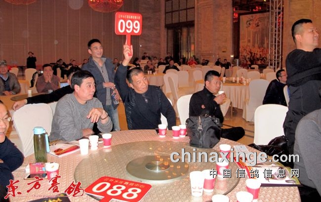 云外水庄精制的拍卖册详细记录了四关鸽王和第五关加站赛共200羽王者归来的每一关的分速、明指暗指的成绩。参加拍卖会400多名嘉宾人手一册,他们对每一羽鸽子都看了一遍又一遍,有的在仔细分析每羽获奖鸽子关赛中成绩,有的在看获得指定荣获千万元大奖给主人带来财富铭鸽,并结合鸽主历年来的赛绩拟在拍卖中下手夺人之爱。