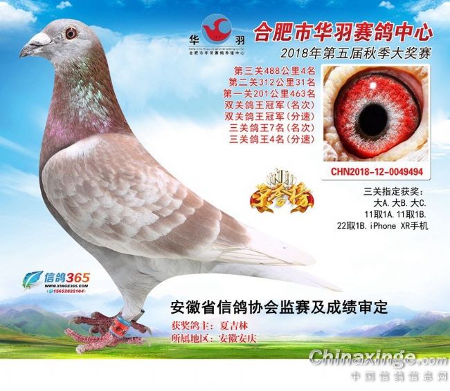 合肥华羽赛鸽中心2018秋季决赛获奖鸽301—400名
