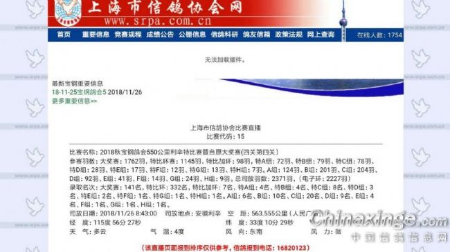 决赛司放地当天大雾,压笼至8:43开笼,二千多羽鸽子当天从安徽利辛(距离上海550公里)艰难归巢123羽,次日上海大雾,因此332名截至次日12:30全部报满,二天声讯台关机共归巢超过一千羽赛鸽。
