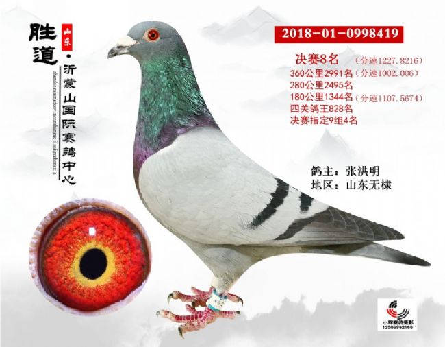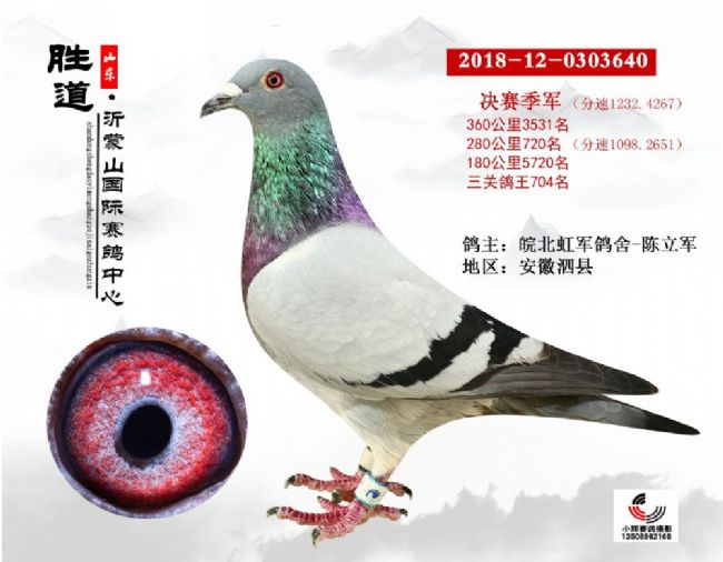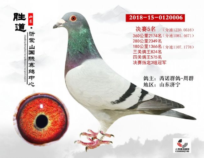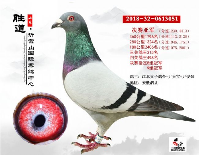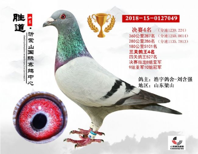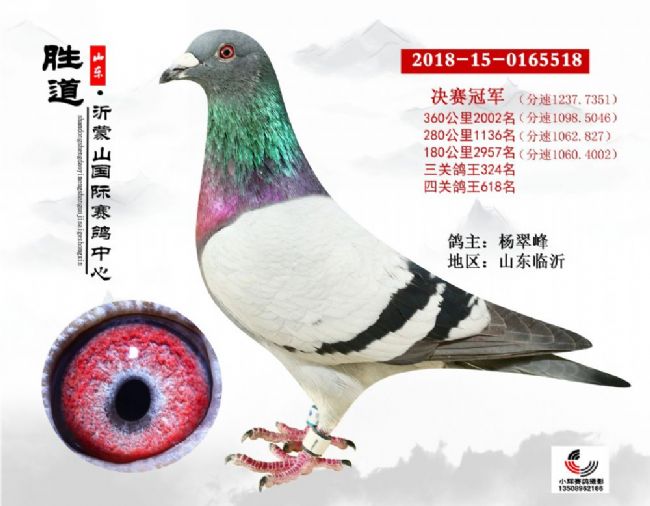 本年度“沂蒙鸽王”的表现获得鸽友大加赞赏,决赛集鸽上笼4298羽,集鸽当日最低气温零下八度,沿途逆风2-3级,冠军分速1237.7351米/分,前500名45分钟报满,当日归巢1682羽。最终临沂鸽友杨翠峰一羽灰鸽0165518夺冠,安徽泗县鸽友江北父子鸽舍-尹兴宝+尹俊强的赛鸽0613051夺得亚军,同时夺得决赛指定8组冠军、9组冠军,同样来自安徽泗县的皖北虹军鸽舍-陈立军赛鸽0303640夺得季军。除了前三甲,决赛还涌现出大批“金手指”。决赛12名财源广进-孙德广+孙建成赛鸽0162130夺得汽车大奖赛冠军,决赛指定3组亚军、5组冠军、8组季军、9组5名;决赛13名金天双赢-惠祥龙+李迪赛鸽0611406拿下小团体7名成员,决赛指定1组冠军、3组季军、4组冠军、5组亚军、6组冠军、8组4名、9组6名、10组亚军、12组冠军的好成绩……最受瞩目的当属今年的鸽王冠军福瑞鸽业,其赛鸽2018-10-0923219一举夺得三关鸽王及四关鸽王冠军,同时获得汽车大奖赛13位!福瑞鸽业曾于2017年度获得第六届“沂蒙鸽王”杯团体冠军,赢得汽车一辆!