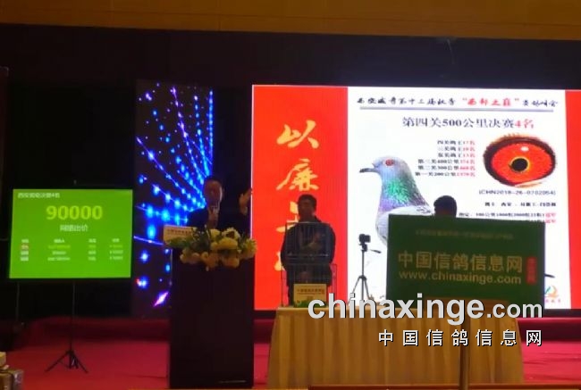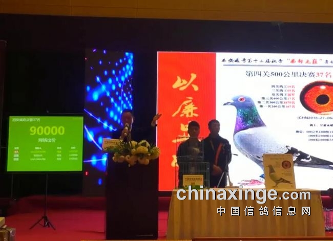 再以决赛37名、四关鸽王19名出价为例,起拍价5000元,现场尚未报价,网络已然火力全开,率先大战10个回合,直接将价格顶到了18000元,增幅高达260%。而且在现场喊出5万的高价之后,网络鸽友毫不示弱,立即出价6万,现场气氛瞬间沸腾,在网络鸽友的刺激下,现场随即应价8万,本以为尘埃落定,拍卖师开始倒计时,就在此时网络鸽友再次出击,随着“中信网9万”,这一嘹亮而又震撼的报价一出,现场响起热烈的掌声,连连叫好,拍卖师也激动不已,同时现场气氛彻底燃爆,在这样惊心动魄的来回较量中,现场鸽友敲定最后一槌:10万元!