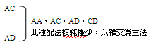 保留杂交优势的方法:假设具有AB基因型的杂种在竞翔中取胜,那么按照上图所示方法就可作出AB基因型的杂交优势鸽,并可作出AA和BB型的复纯鸽。