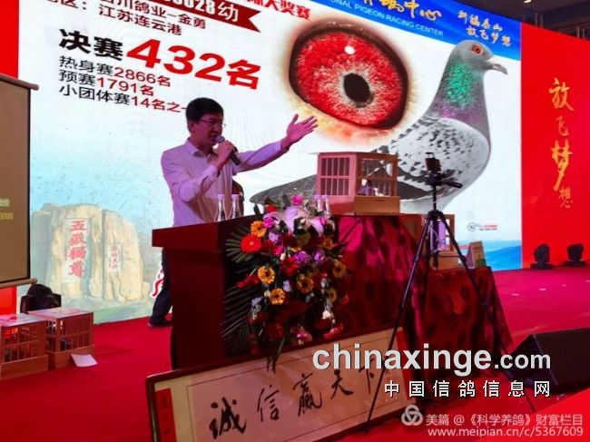 中信网北京通讯员《科学养鸽》原期刊记者何建民23日报道:山东省泰安市泰山乐鸽国际赛鸽中心颁奖拍卖盛典在泰山宝盛大酒店隆重举行,上午10:18开始颁奖盛典,11时多拍卖会由中国诚鸣信鸽拍卖团队创始人周传红先生主持。出席颁奖盛典活动的嘉宾有:山东省体育局领导、中国鸽界元老前辈中国信鸽协会原竞翔部部长张顺奎、济南市信鸽协会主席何德利、华通控股集团董事长刘电新等。全国各地鸽友1000多人,共同见证了祈福泰山、放飞梦想的颁奖盛典!