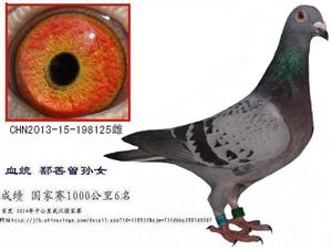 配对:南北赛线有赛级的成绩鸽配对,取西北千公里特比环“西安殿军雄”配南北赛线国家赛前10名,有4羽成绩鸽的6羽雌相配。子代400公里秦岭特比环2016年已经归巢,希望2017年在山区有更好发挥!
