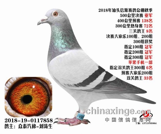 汕头市信源赛鸽公棚2018年秋季决赛获奖鸽301—400名