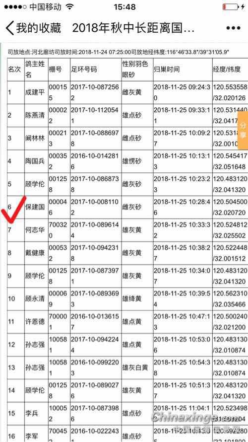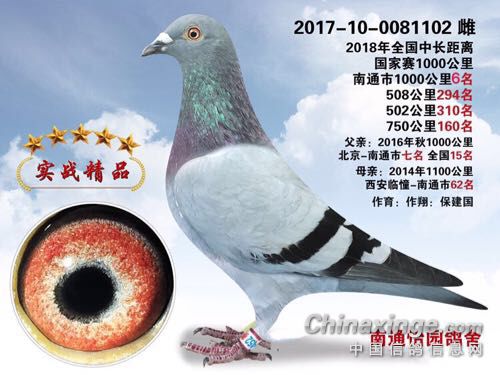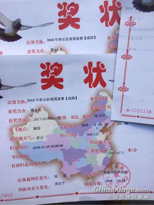 2018年秋全国1000公里联翔一羽国血吴淞配一羽詹森,又获江苏省南通市赛区6名: