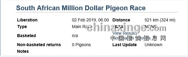 2019年南非百万美金公棚决赛集鸽快报