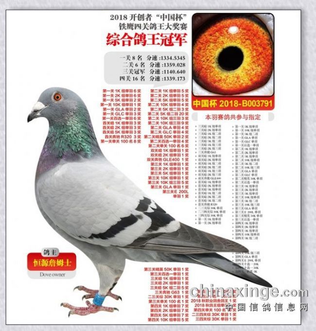 点评:书写现代鸽史的一代传奇铭鸽,就此谢幕。但其后代所组成的“哈利王朝”必将持续在赛鸽场上散发光芒!