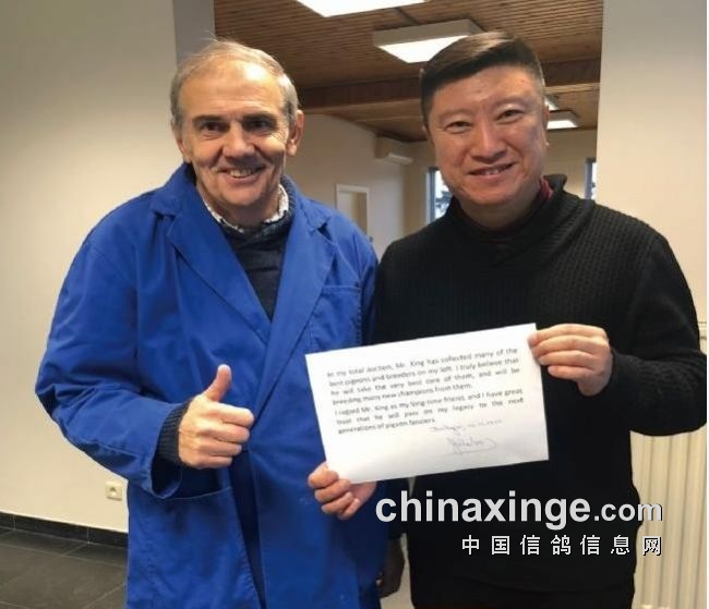 2018年,比利时赛鸽名家盖比·凡德纳比由于健康原因(养鸽引起的肺部问题),在坚持打完今年的比赛之后,正式告别赛鸽运动,全部鸽系清棚出售,一羽不留!据鸽友爆料,盖比这次清棚拍卖会总成交额高达600多万欧元,打破了欧洲鸽界历史上的成交纪录,数据令人咂舌。同年12月13日,盖比邀请开尔董事长邢伟先生前往比利时家中做客,并一一介绍其一身心血的世界级铭鸽,并亲自签字授权开尔鸽业成为盖比王朝的继承者! [详细]