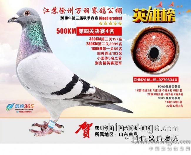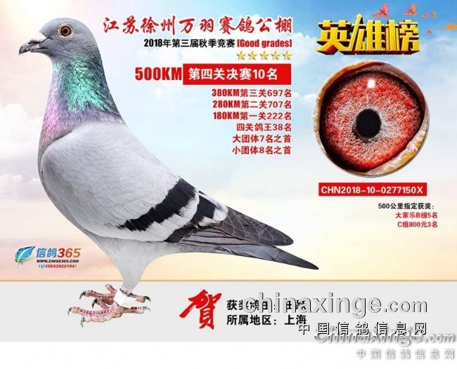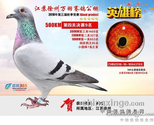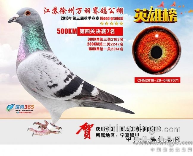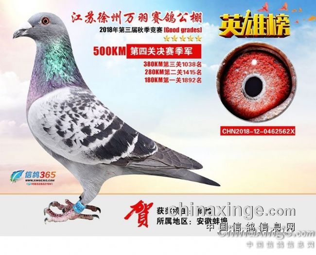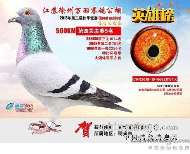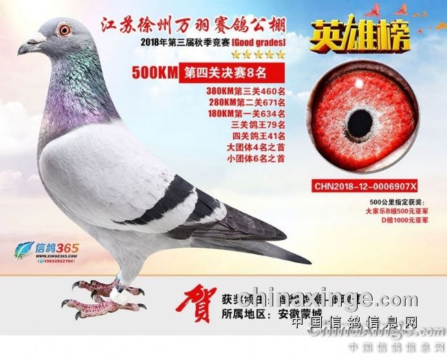 江苏徐州万羽赛鸽公棚2018秋季决赛获奖鸽401—500名