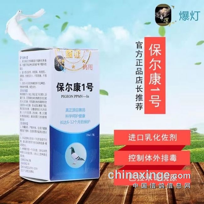 保尔康1号,真正的鸽源巴拉米哥抗原提取,信鸽VIb亚型巴拉米哥疫苗,让您的爱鸽远离新城疫、甩拉吐的困扰,公棚采用保尔康1号注射免疫,0歪头率,公棚3月份首次接种免疫后8个月,检测赛鸽体内抗体效价仍维持在log7以上,可确保公棚全年无忧,不会出现决赛结束后大批奖鸽发病死亡等事故,经18年国内20多家公棚使用,确认效力完美,敬请放心!