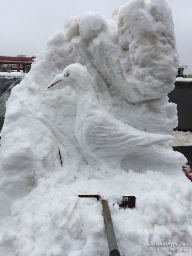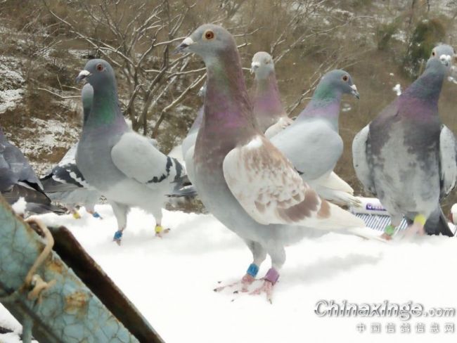 瑞雪兆丰年,瞧,白雪把红鸽衬托的更红了