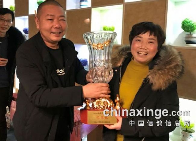 武汉市东西湖区2018年度年会上,沈惠姣女士收获2018年度贤内助特别贡献奖!鸽会王会长颁发奖杯,高度赞扬沈惠姣女士在繁忙工作之余,大力支持老公积极参与东西湖区的赛鸽事业!