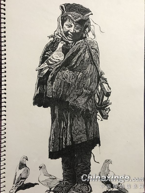 爱鸽画鸽,用黑色水性笔把喜爱的鸽子展现在画面上!