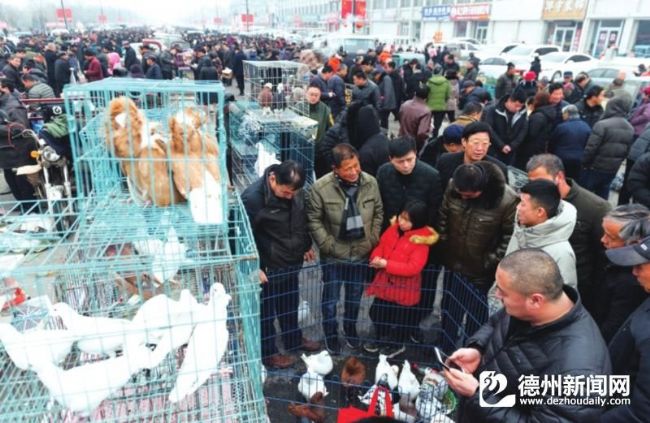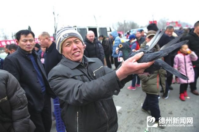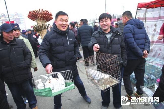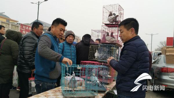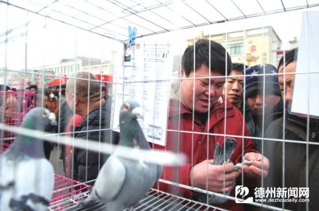 2月12日,农历正月初八,早晨还不到5点,老徐将一车爱鸽拉到了平原县恩城镇滨河公园沿街集市上,找了一个较好的位置,摆起了摊,参加这一年一度的初八鸽子节商品交易大会。此时,在红运村的这条长约5000米的集市上,各种各样的鸽子早已经占据了有利位置。来自内蒙古、江苏、北京、天津等全国多个城市,操着不同口音的人群也早已经来到这里等候交易。
