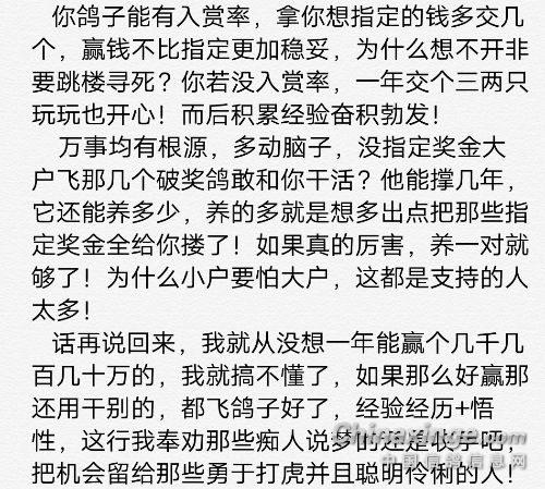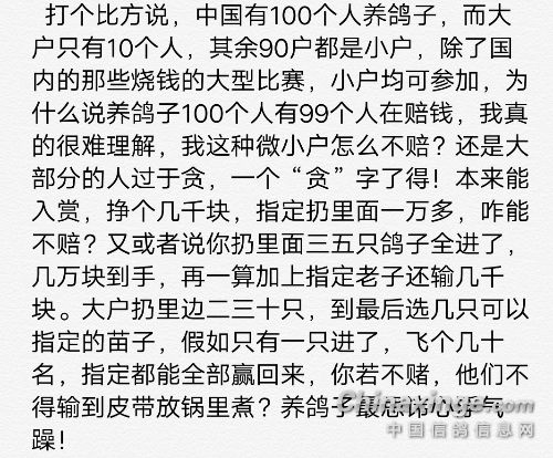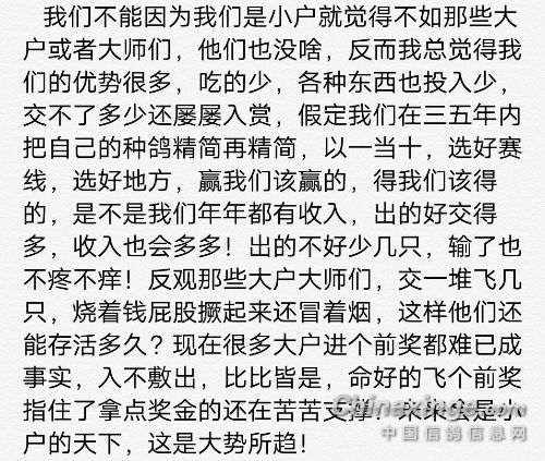 小户优势是未来中国鸽界主流