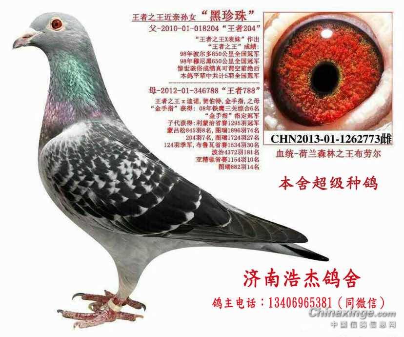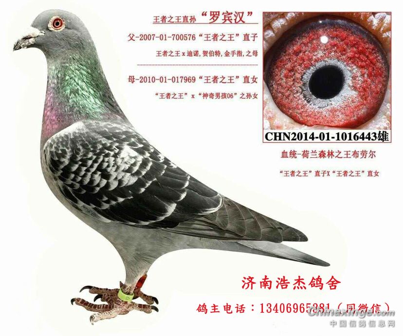 这组配对的雄鸽是王者之王的直子与王者之王直女作育,也就是我们常说的荷兰森林之王布劳尔的血统,下图是此鸽的照片: