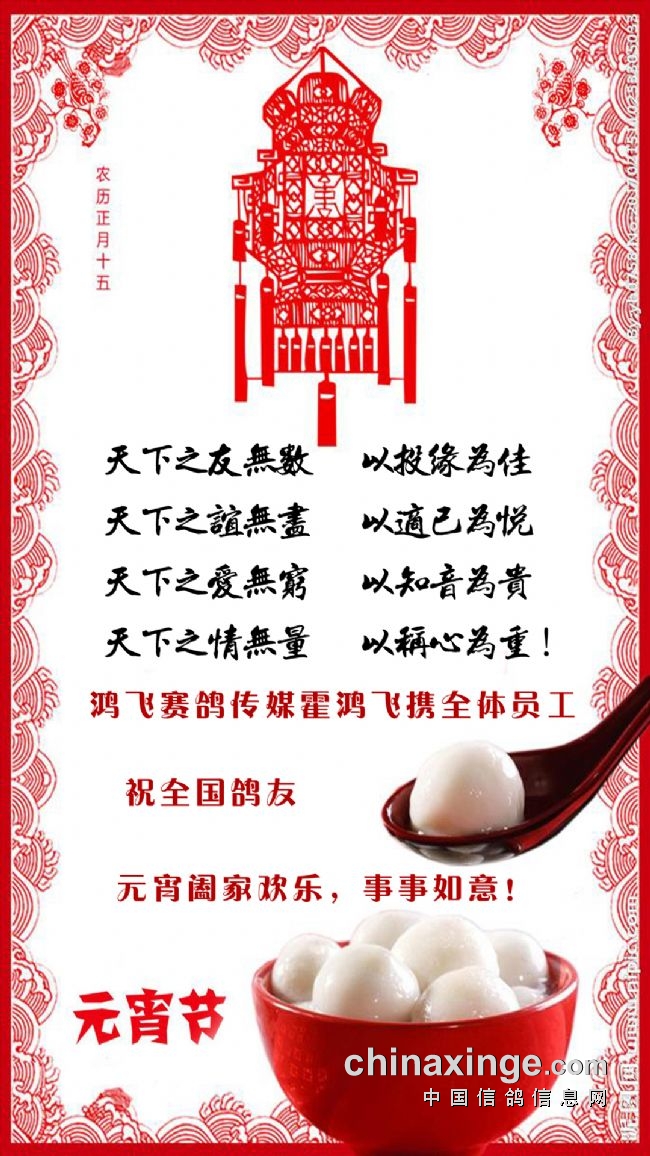 鸿飞赛鸽传媒祝全国鸽友元宵节快乐