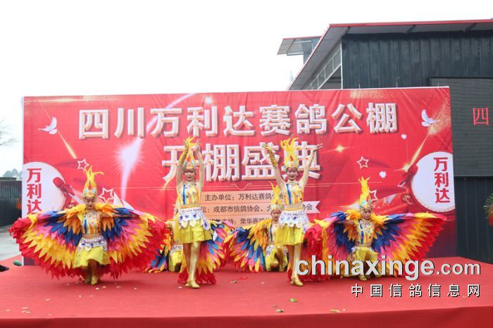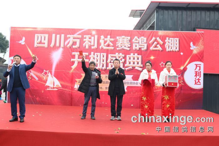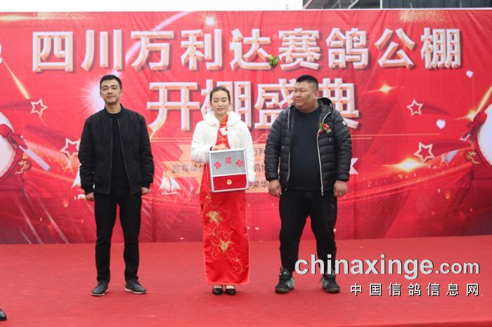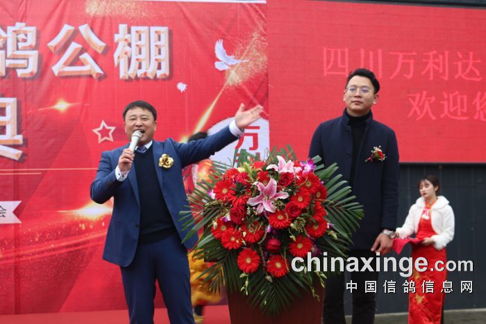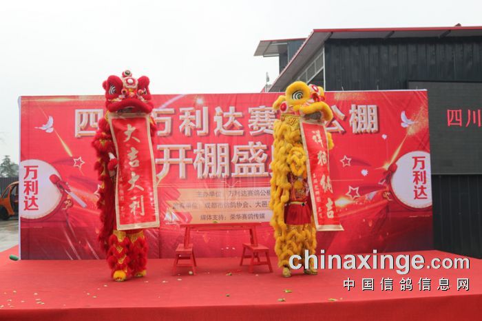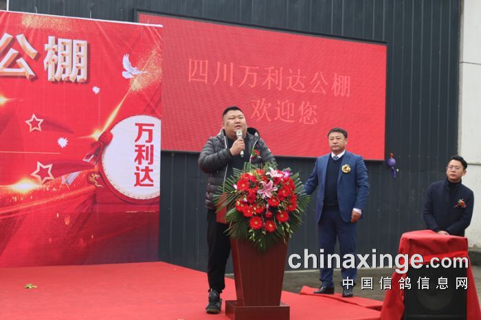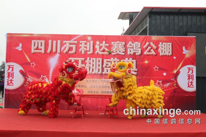 在舞狮环节,由省鸽会主席饶绍华、青海省鸽会主席邵德福一起为狮点睛,为庆典活动拉开了序幕!成都市鸽协秘书长陈帅、陕西傲翔申建峰、青海豪强邵德福、上海中华信鸽余宏上台致辞,对万利达赛鸽公棚开业表达了祝贺!