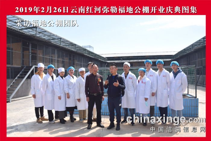 2019年2月26日,云南弥勒市福地信鸽竞翔公棚正式开业,并在公棚举办了盛大的开业庆典。众多鸽友齐聚,现场欢歌笑语,热闹非凡。弥勒市福地竞翔信鸽服务有限责任公司(简称弥勒福地公棚),由宁跃中独资建设,于2018年7月动工,12月完工。2019年元月1日正式收鸽。宁跃中先生为人正直、大方、热情好客。自小酷爱信鸽,养鸽至今40余年,经验丰富。