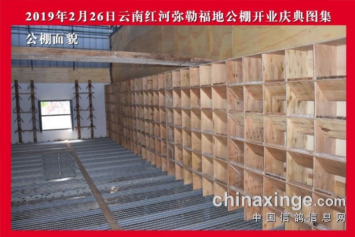 公棚坐落于弥勒市城北郊5公里处(原红河公棚)原鸽棚已全部拆除重建。新鸽棚建筑面积1700多平方,可容纳赛鸽10000羽以上,配套有办公室、消毒室、隔离室、观察室、拍卖大厅、饲料库等。本公棚鸽棚设计科学合理,美观大方、精致、采光好、前后顶部通风透气、可开、可关、灵活调节室内温度、干净卫生,鸽舍层高离地2米,确保赛鸽舒适恋巢,健康成长。