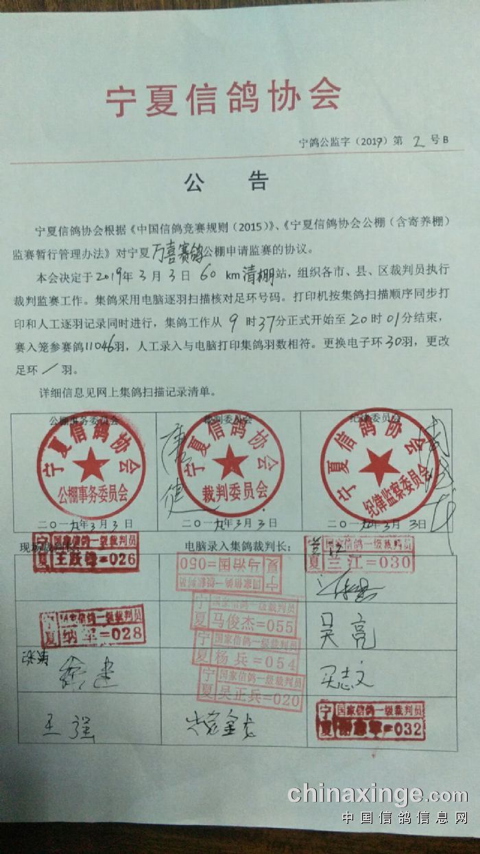 据规程显示,宁夏万喜公棚2019年春赛设第一关热身赛、第二关预赛、第三关决赛、精英赛(规程附后)、团体赛、鸽王赛、加站排名赛。第一关180公里将于3月中旬开始,取前百名,60公里清棚后180公里热身赛前确定环号,并交纳参赛费,一经确定不可更改。欢迎广大鸽友关注。