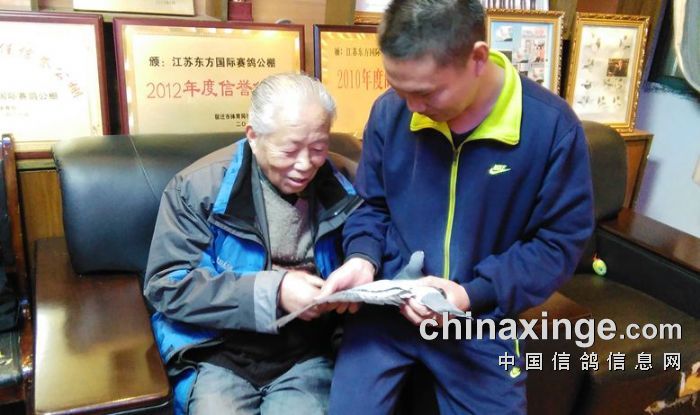 后来我在1950年后,考上北京对外贸易大学,到北京求学去了,暂时停止养鸽。但是我大学毕业后回到杭州,还是喜欢养鸽,这段时间,比以前养鸽提高了一大步,可以参加训放比赛了。我还参加了浙江省体育运动会的信鸽比赛,获得了90名,还有地方信鸽协会的比赛。再发展到参加全国各地信鸽公棚(中心),特别是在去年参加安徽省合肥华羽赛鸽中心的秋季决赛,获得了冠军。今年同样在该公棚秋季比赛中获得了13名,33名,85名和548名等高位名次。还有在山东省临沂沂蒙山公棚、徐州爱翔公棚、贵州省贵阳市林城赛鸽中心、江苏省泗洪东方国际赛鸽公棚、无锡双阳公棚、杭州鸿翔赛鸽公棚等都获得了高位名次。曾有媒体向我采访时问我,“你90岁获得冠军,与你身体健康有什么关系?”我说,养鸽能锻炼身体,培养好心情、好心态,我历来是以鸽会友,心胸宽广,在培养赛鸽时,家飞、训飞、放飞,我都要看爱鸽飞上蓝天,飞到看不见为止,远视对双眼好处很多,所以我现在的视力不错,看报也可以不用戴眼镜,耳朵牙齿都还可以。