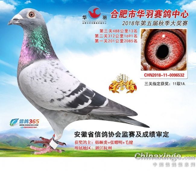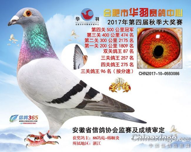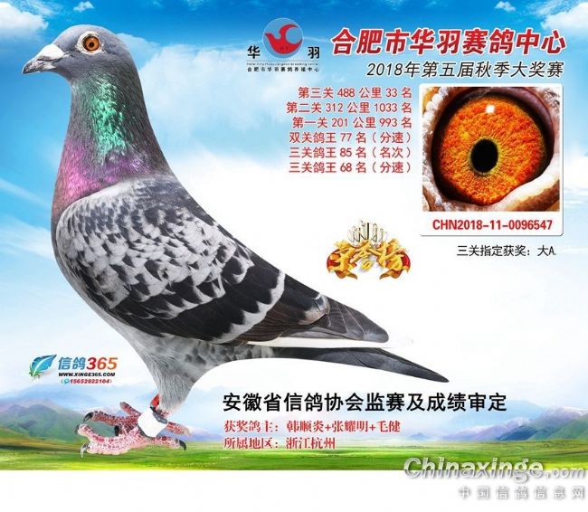 越往后阅读,越能感受到韩顺炎老前辈对信鸽的挚爱之情:从小喜欢信鸽,养鸽之路十分艰难,鸽棚拆迁经历8次,从杭州市中心到西湖区,再到余杭市,然后一路迁至富阳区,现在鸽棚位于天鸿美和苑小区。虽然在苦难中养鸽,但老前辈积极参加各种赛事,赛鸽成绩一点都不差,2017年还获得了安徽省合肥华羽赛鸽中心决赛冠军。