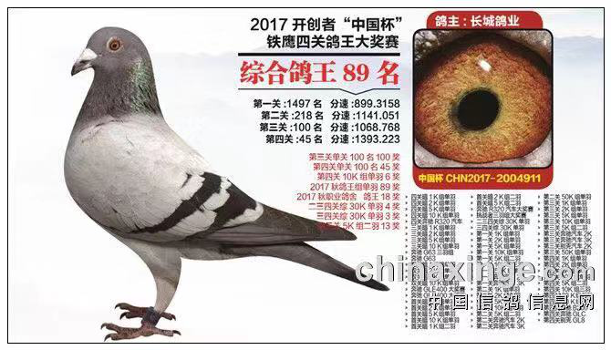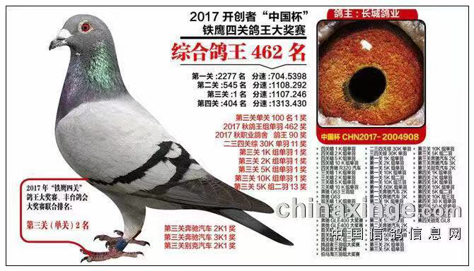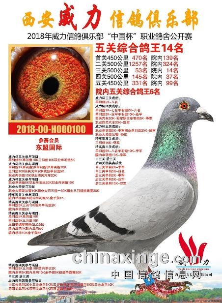 2018西安威力信鸽俱乐部“中国杯”职业鸽舍公开赛五关综合鸽王14、63、69、99、102、109、120名……