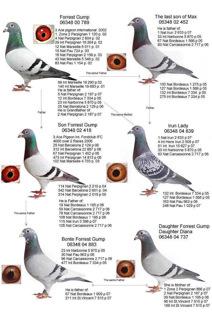 “阿甘”毫无疑问成为福登霍芬手上的头号种鸽,它也是阿尔登霍温鸽舍内众多种鸽的鼻祖。它的儿子“阿甘直子”(06348-05-420)得波便是获城国际赛冠军“年轻福瑞斯特”(06348-10-196)的爸爸。