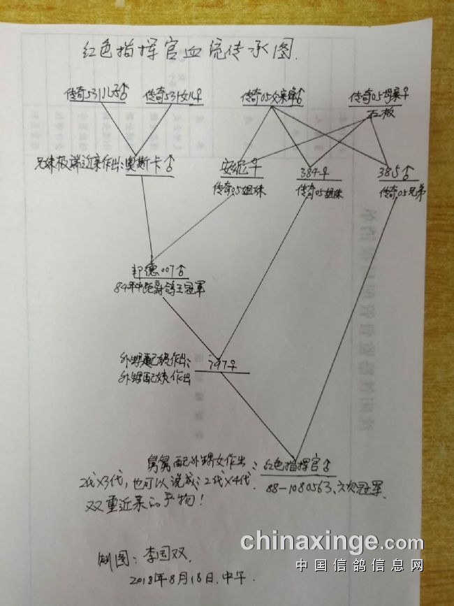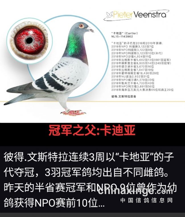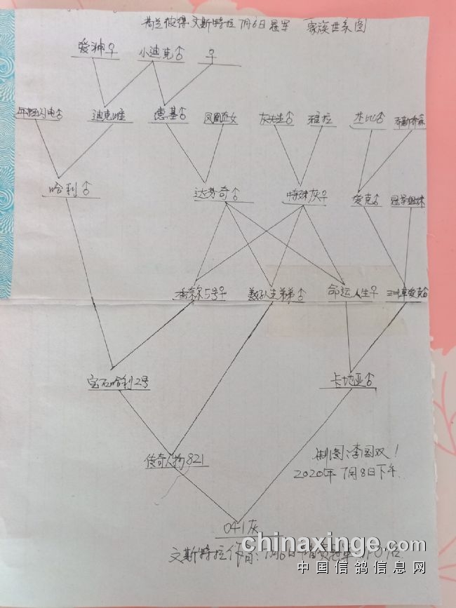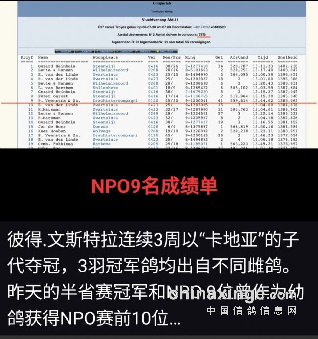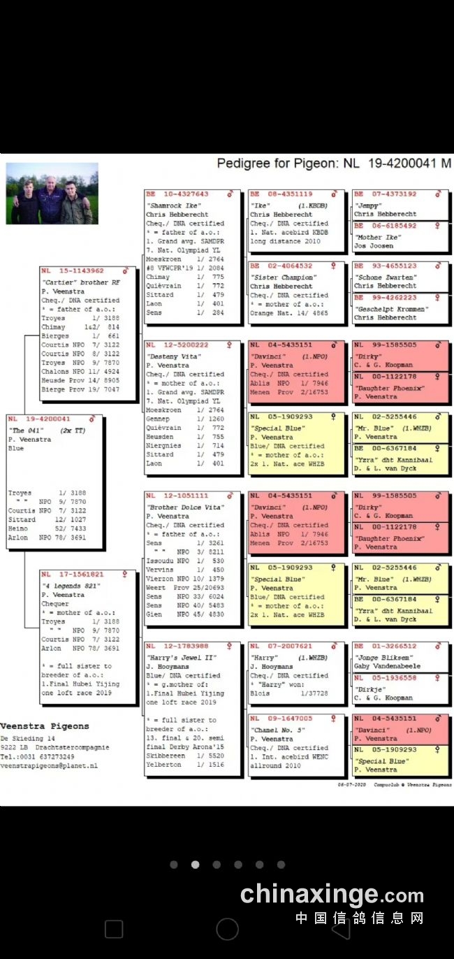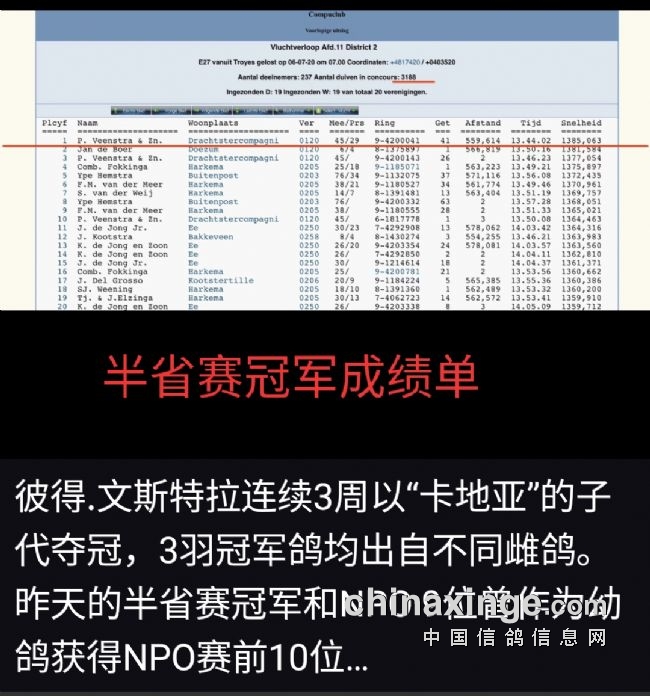 7月6日荷兰比赛,他家的一只鸽子获得:半省赛冠军、NPO9名。吉利特将鸽子的血统书发到了朋友圈,使我有机会将这只冠军的血统传承关系研究研究。