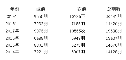 以下是历年比赛集鸽情况: