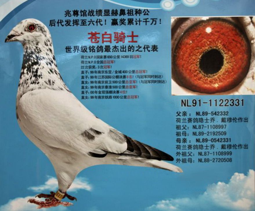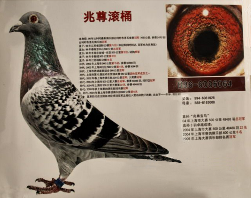 胡:两个比利时国家赛的冠军。滚桶是万候的,女王是林伯格的省赛冠军、鸽王,而且是幼鸽赛的冠军。林伯格是世界名家,万候也是,买了他的冠军鸽,特别又是幼鸽冠军,如果没有买这两冠军来配苍白,苍白也不会有今天。