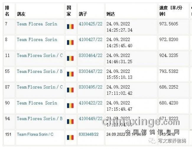 据介绍,罗马尼亚鸽友弗洛雷亚·索林的赛鸽,在本届赛事中,预赛之前的所有赛项,均居前三。弗洛雷亚·索林鸽棚,大铭鸽众多,收集了世界所有大名家的铭血直子、直孙鸽。这次获佳绩的赛鸽血统,基本上是新哈利的后裔。
