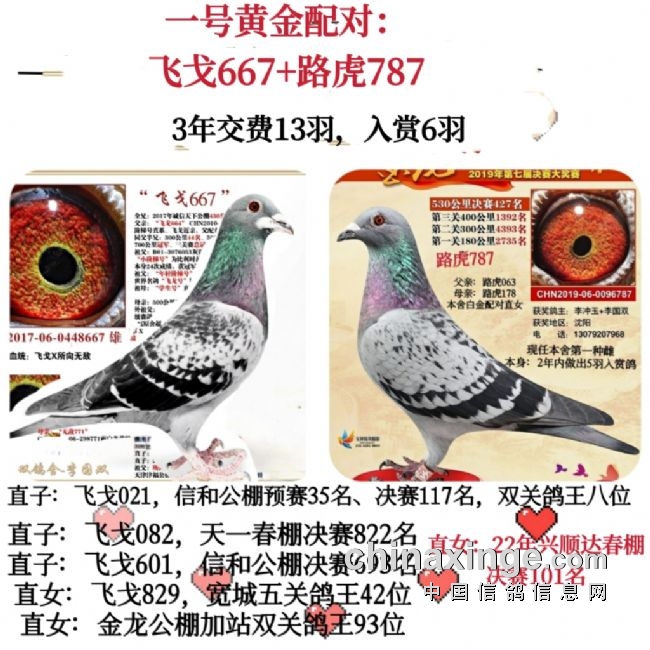 有《一号黄金配对》——飞戈667+路虎787直子女2轮4羽;