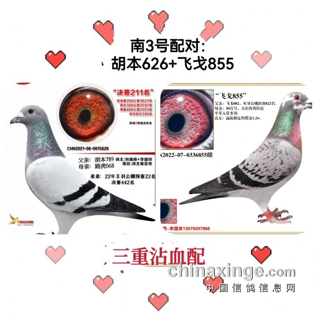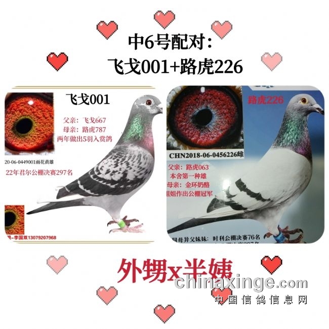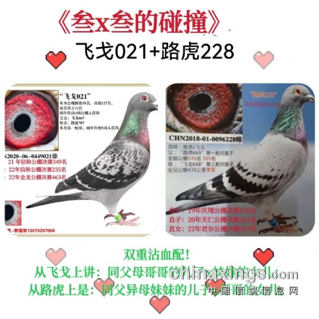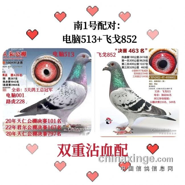 以上配对,很多都是沾血配作出的,可以直接作为种鸽使用,也可以到春棚去比赛,合作共赢!