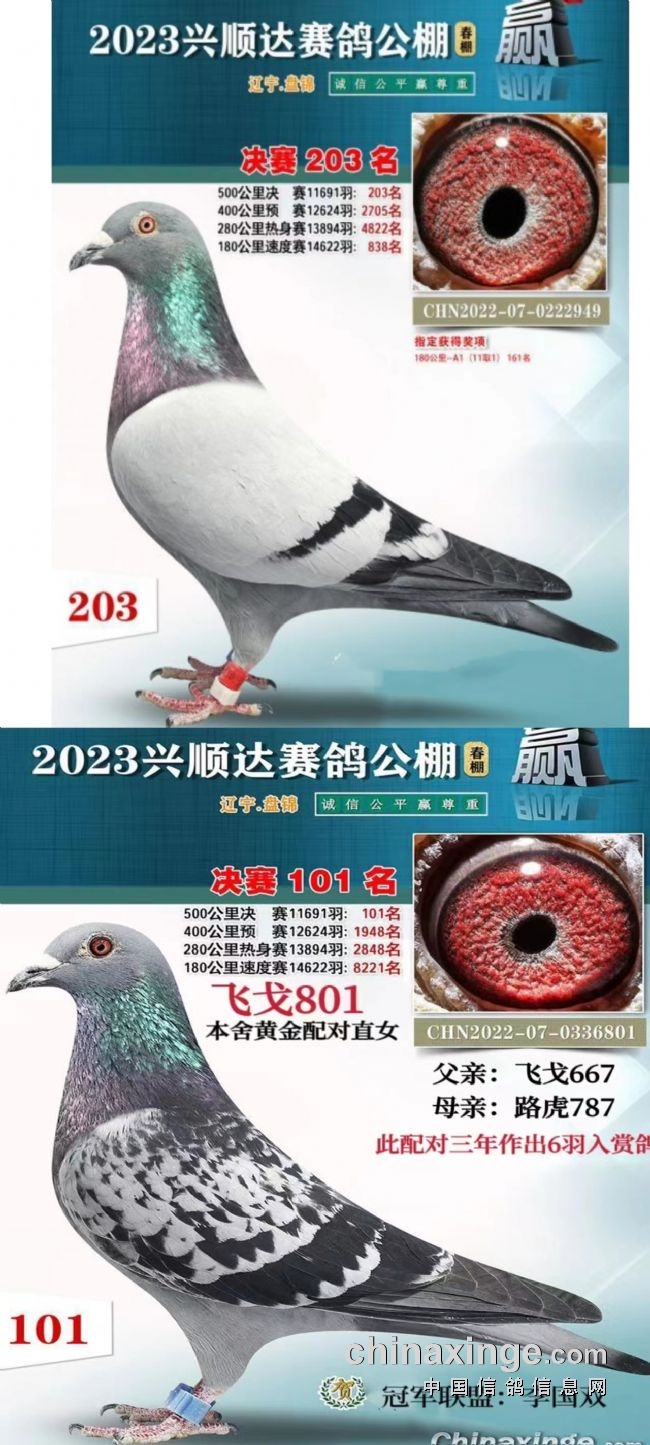 2023年交了6个秋季比赛的公棚,分别是:新疆军威公棚、黑龙江大冠宇公棚、吉林信和公棚、辽宁金龙公棚、辽宁运翔公棚及辽宁丰羽公棚。