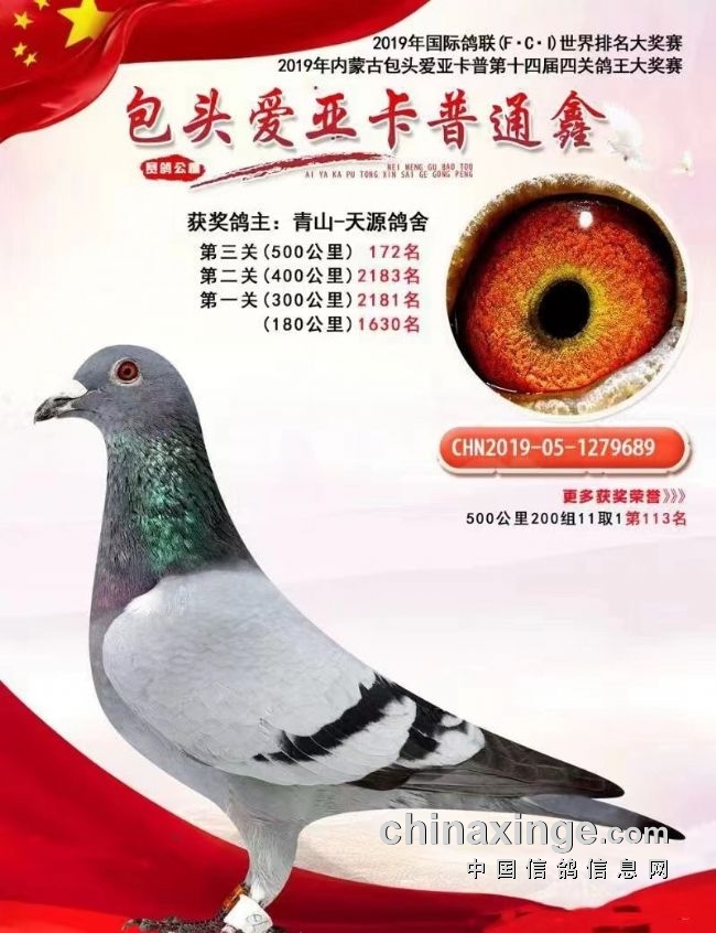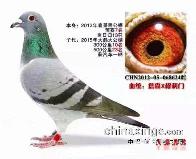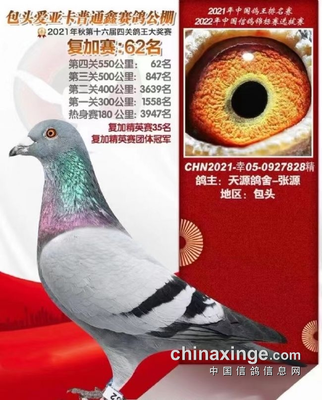 我家的鸽子120公里收费站、到200公里热身赛,再到300公里、400公里、500公里、550公里,它全飞过公棚前十。主要是它比赛当天的天气适合它,正好这个鸽子的状态来了,它就能飞在头一波。