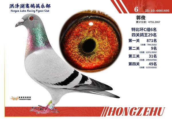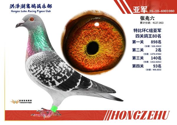 四关硬仗飞出真王者,一雌封神!张兆六鸽友麾下一羽黄眼雨点雌鸽战至巅峰——该鸽四关总分速高达5272.8613米/分,稳居四关鸽王榜首。此鸽单关战绩更是惊艳全场,以首关203名、二关13名、三关32名,直至四关夺得亚军,赛场无可匹敌。同时,张兆六鸽友可谓横扫本届秋赛,不仅包揽资格赛冠亚军、二关亚军、四关亚军等高位,还摘得特比环C组亚军及四关鸽王第4名,狂揽下多项大奖,实力不容小觑。